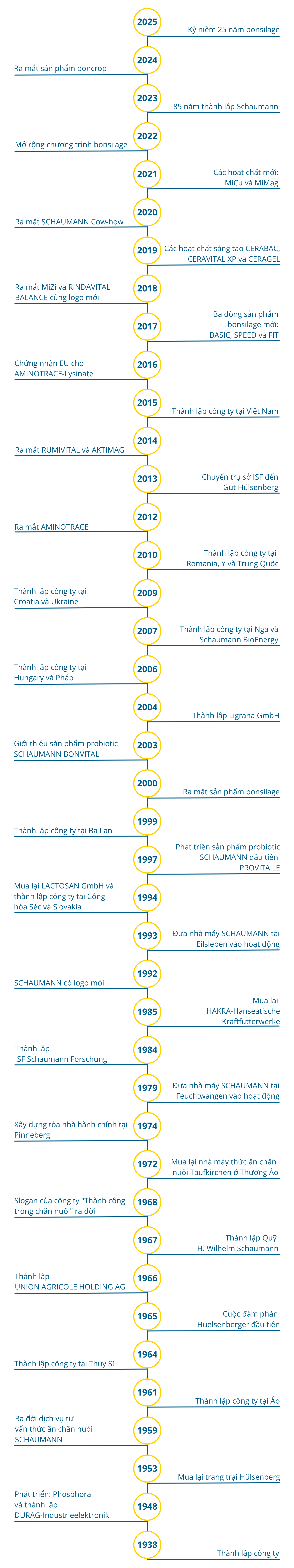 Năm 1938, H. Wilhelm Schaumann tìm ra cách sản xuất vitamin cô đặc cho nông nghiệp từ dầu gan cá và dầu cá. Trong những thập kỷ tới, công ty có thể nhìn lại những dấu mốc quan trọng trong quá trình phát triển của mình.